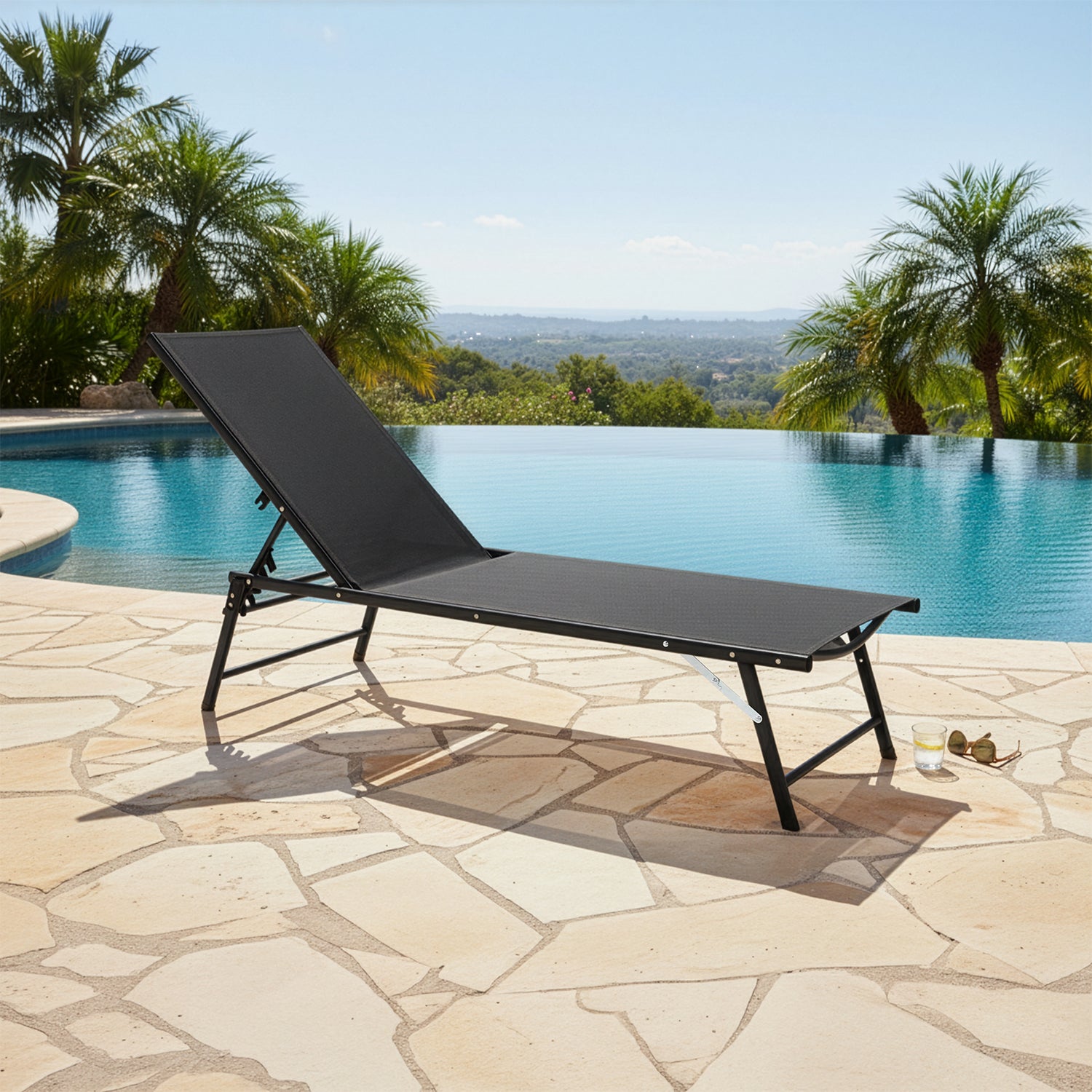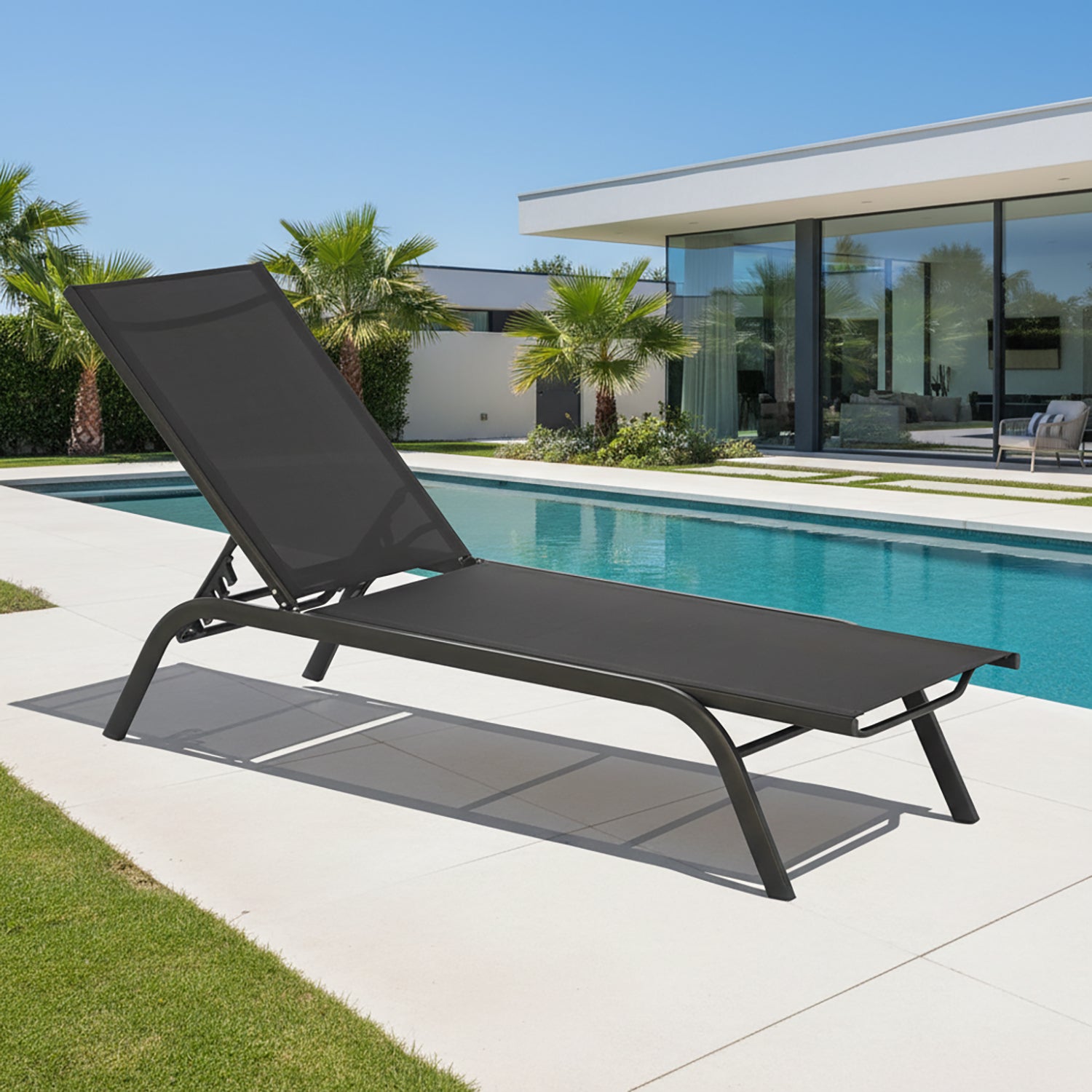 Vestiamo Casa Giardino Lettino Sdraio in Acciaio e Tessuto Antracite Schienale Regolabile h33x180x53...