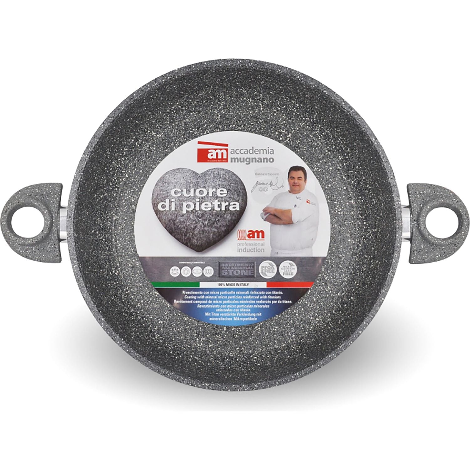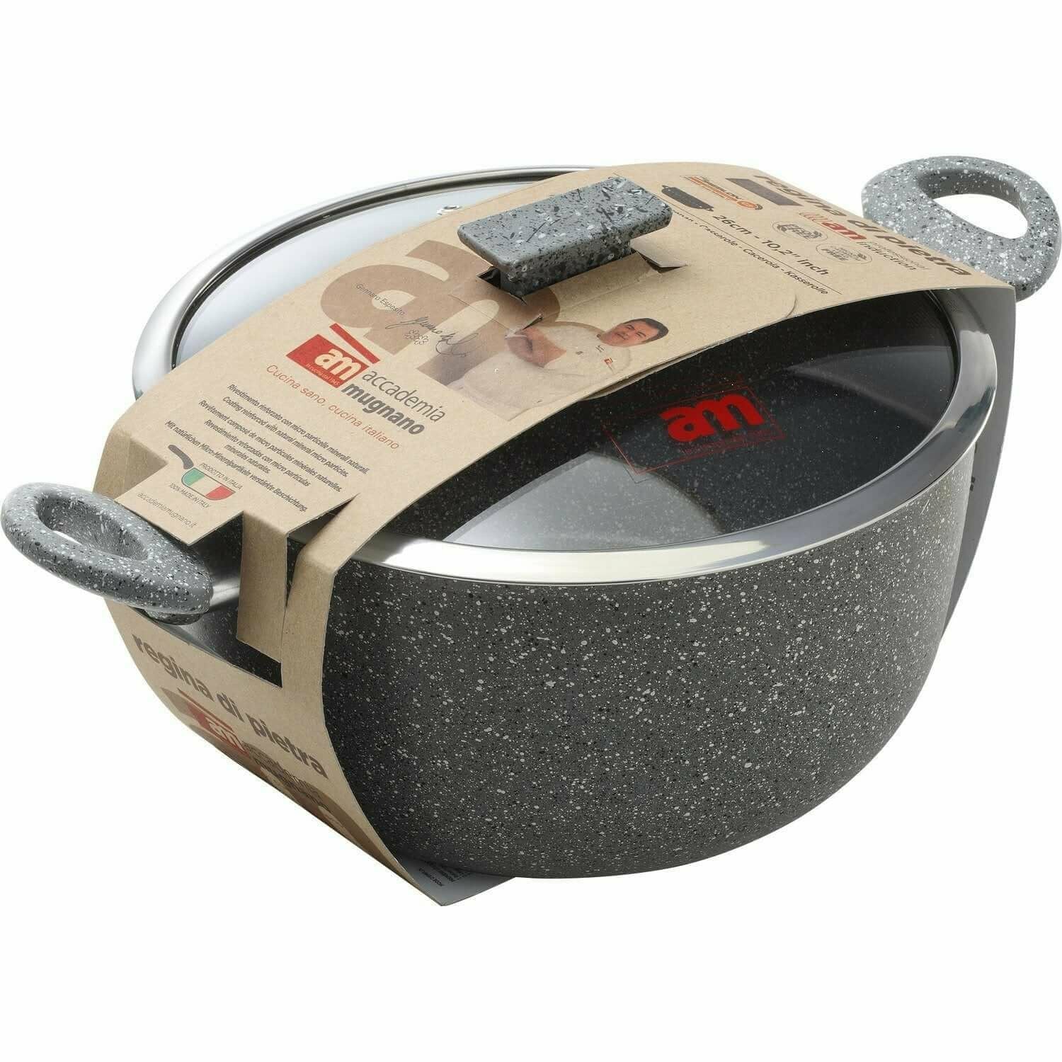 Accademia Mugnano Pentola antiaderente 2 manici con coperchio in vetro Regina di...