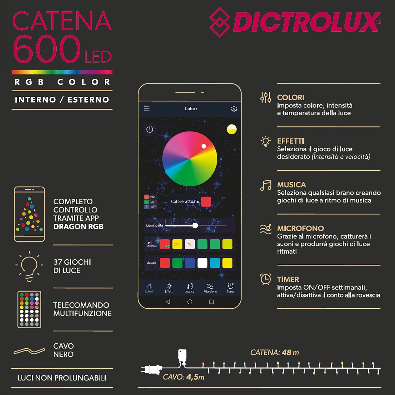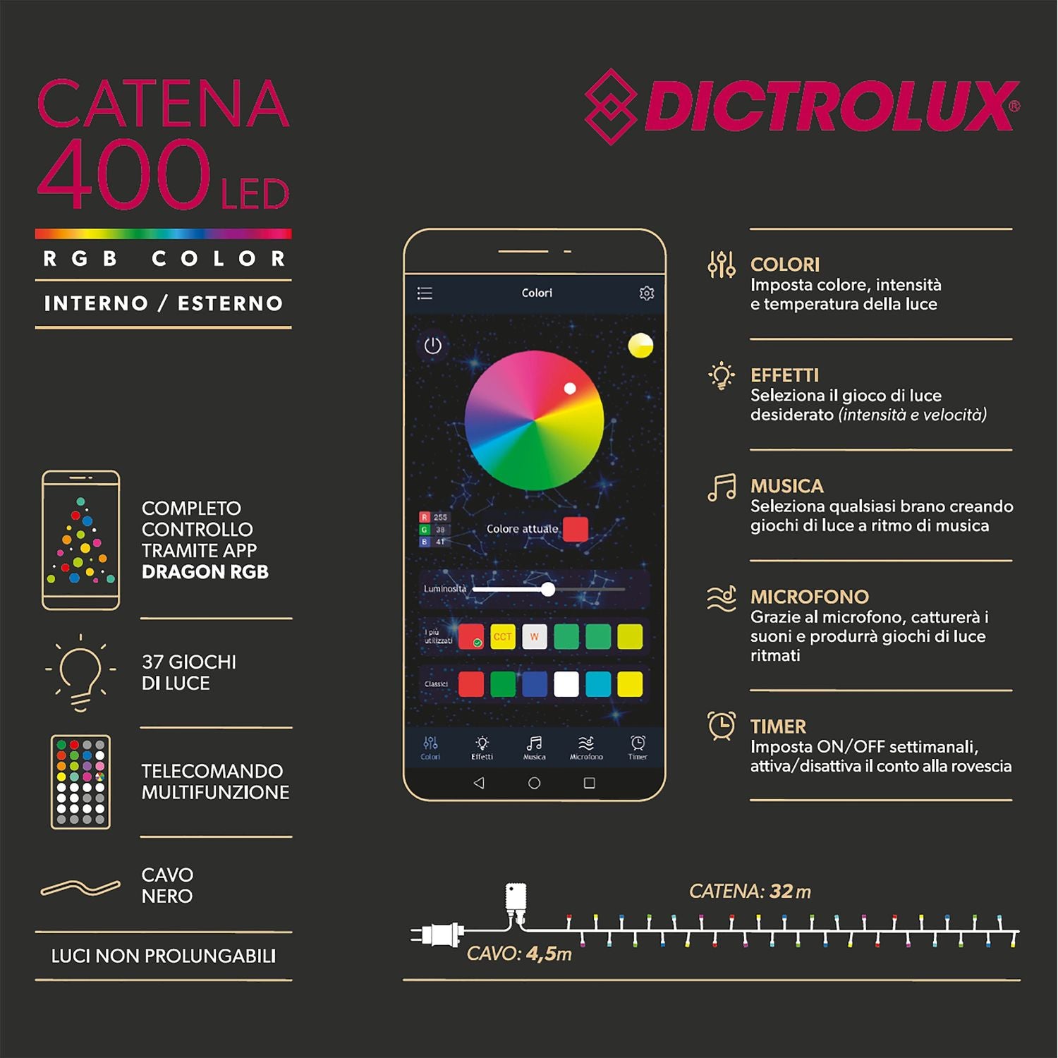 Dictrolux Catena Luminosa Solare 10 Lampadine Colorate da esterno